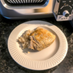 • Once fully cooked, remove the macaroni & cheese from the air fryer and let it cool for a few minutes.